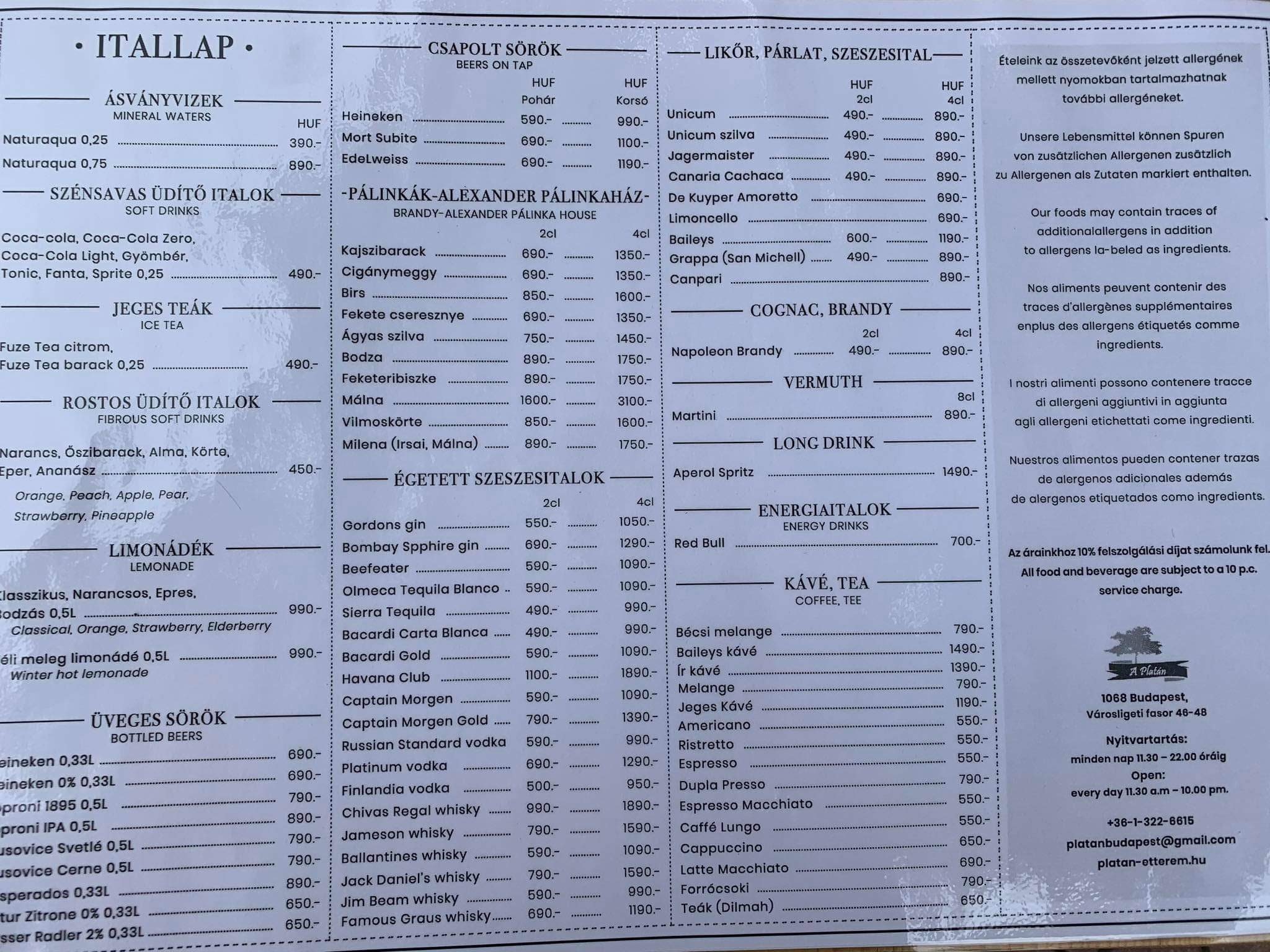 Nyitva tartás: mindennap 11.30-22.00 óráig